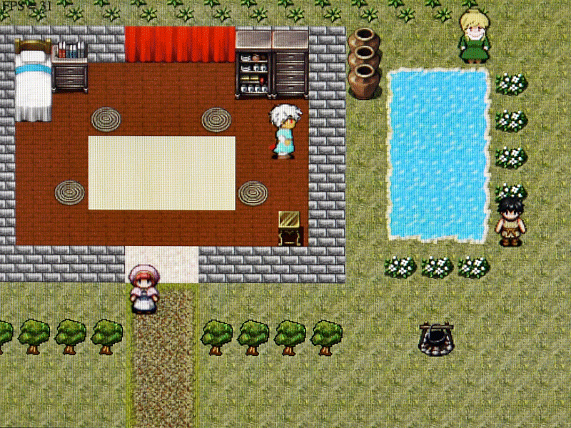 短いストーリーですが、とりあえず最初から最後まで通してプレイできる事を確認し、あとはオープニングとエンディング画像、BGMを作るだけとなりました。今は仮のBGM「かえるの歌(輪唱)」を流しています。